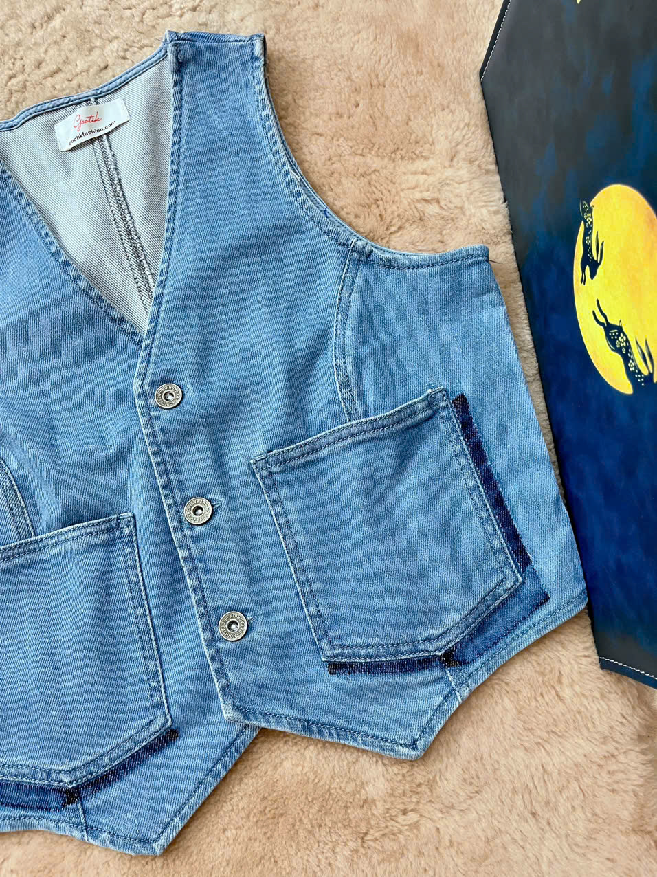 Chiếc áo Gile chất liệu Jeans họa tiết hoa nhí hay Jeans trơn hoặc phối túi 2 bên sành điệu, sang chảnh chắc chắn sẽ làm hài lòng những cô nàng thời trang cá tính. Với chiều dài 45cm dáng Croptop sành điệu sẽ cực kool ngầu nếu nàng chọn phối cùng 1 chiếc quần Jean Basic nhà Gootik đó ah.