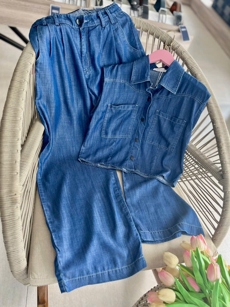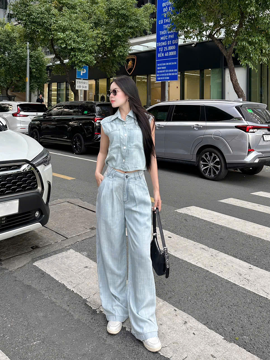 Lên đồ xuống phố cùng sét đồ thướt tha mềm mại nhờ chất vải Jeans lụa cao cấp được các nhà thiết kế Gootik Fashion tạo nên một bản phối hài hòa vô cùng. Chiếc áo sát nách với 2 túi trước ngực xinh xắn & hàng nút áo tròn xịn sò, chắc chắn cực tinh tế (Dài 50cm - Rộng 45cm) phối cùng chiếc quần ống rộng (Dài 100cm - Rộng 30cm thu nhỏ dần về 25cm), thiết kế túi chéo & xếp ly tạo điểm nhấn ấn tượng. Sét đồ nhẹ nhàng, bay bổng, yêu kiều thướt tha xứng đáng "10 điểm không có nhưng" hay "0 điểm - Không có điểm nào để chê" đã về ngập kho nhà Gootik Fashion rồi. Các nàng còn chần chờ gì nữa mà không rinh ngay em ấy về tủ đồ của mình đi nè..