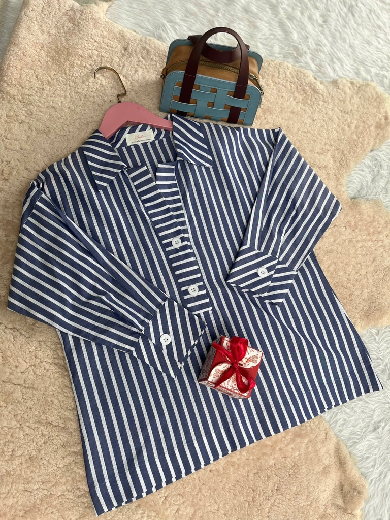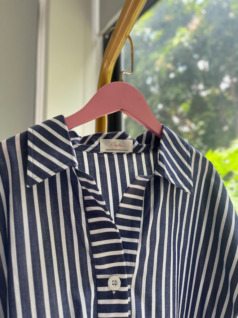 Thiết kế: Sọc dọc chiếm phần lớn bề mặt áo, giúp tạo hiệu ứng thon gọn.