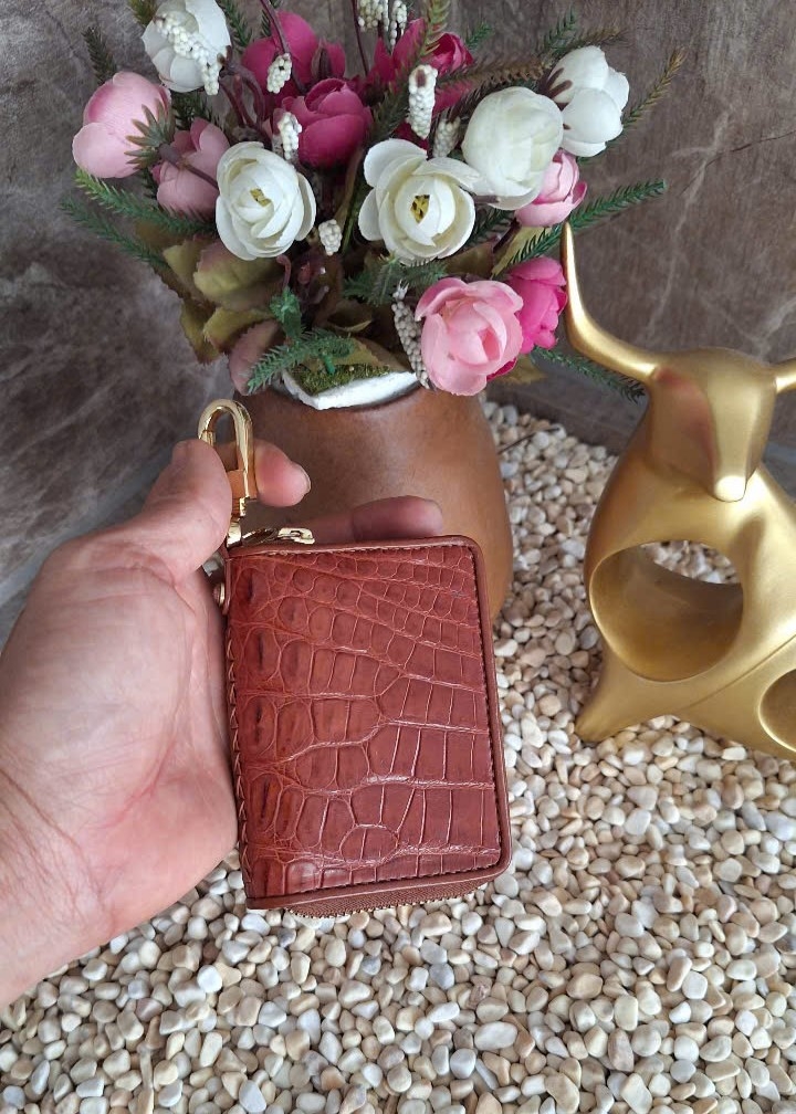Móc khoá GOOTIK được làm từ Da cá sấu mặt ngoài, mặt trong da bò – Màu sắc tự nhiên, độ bề cao, có đầy đủ các ngăn để đựng tiền và thẻ, đáp ứng nhu cầu sử dụng hàng ngày.