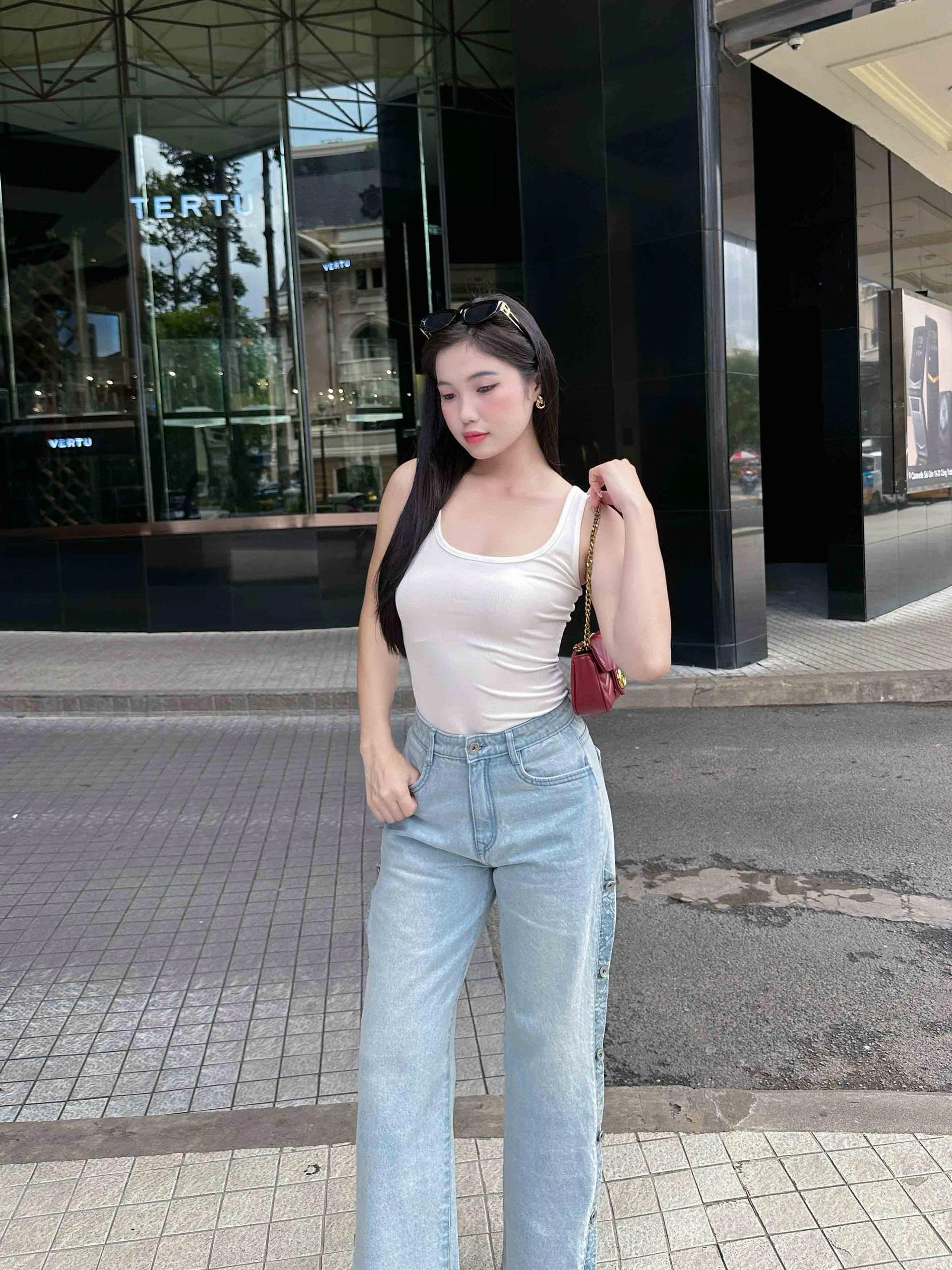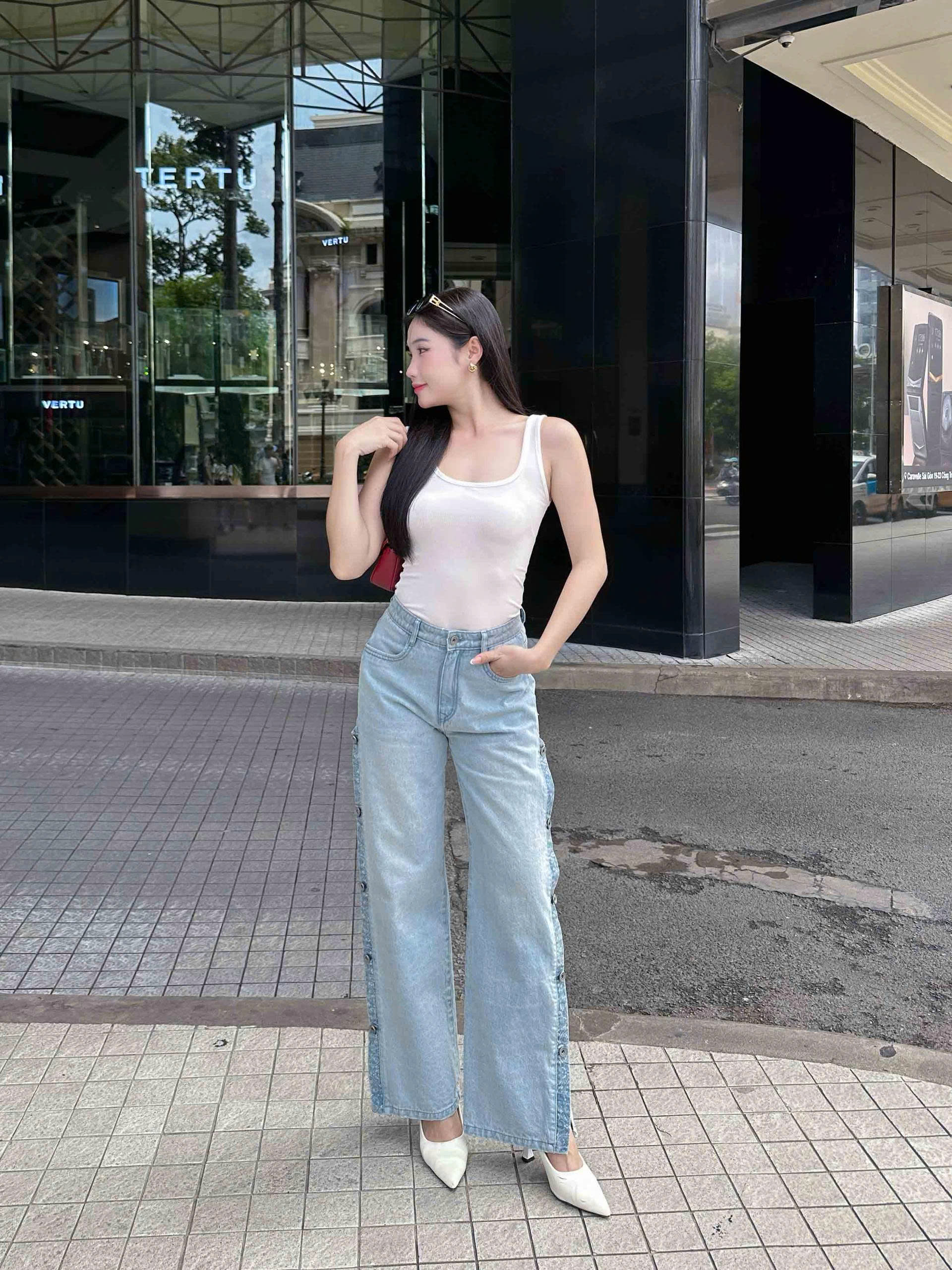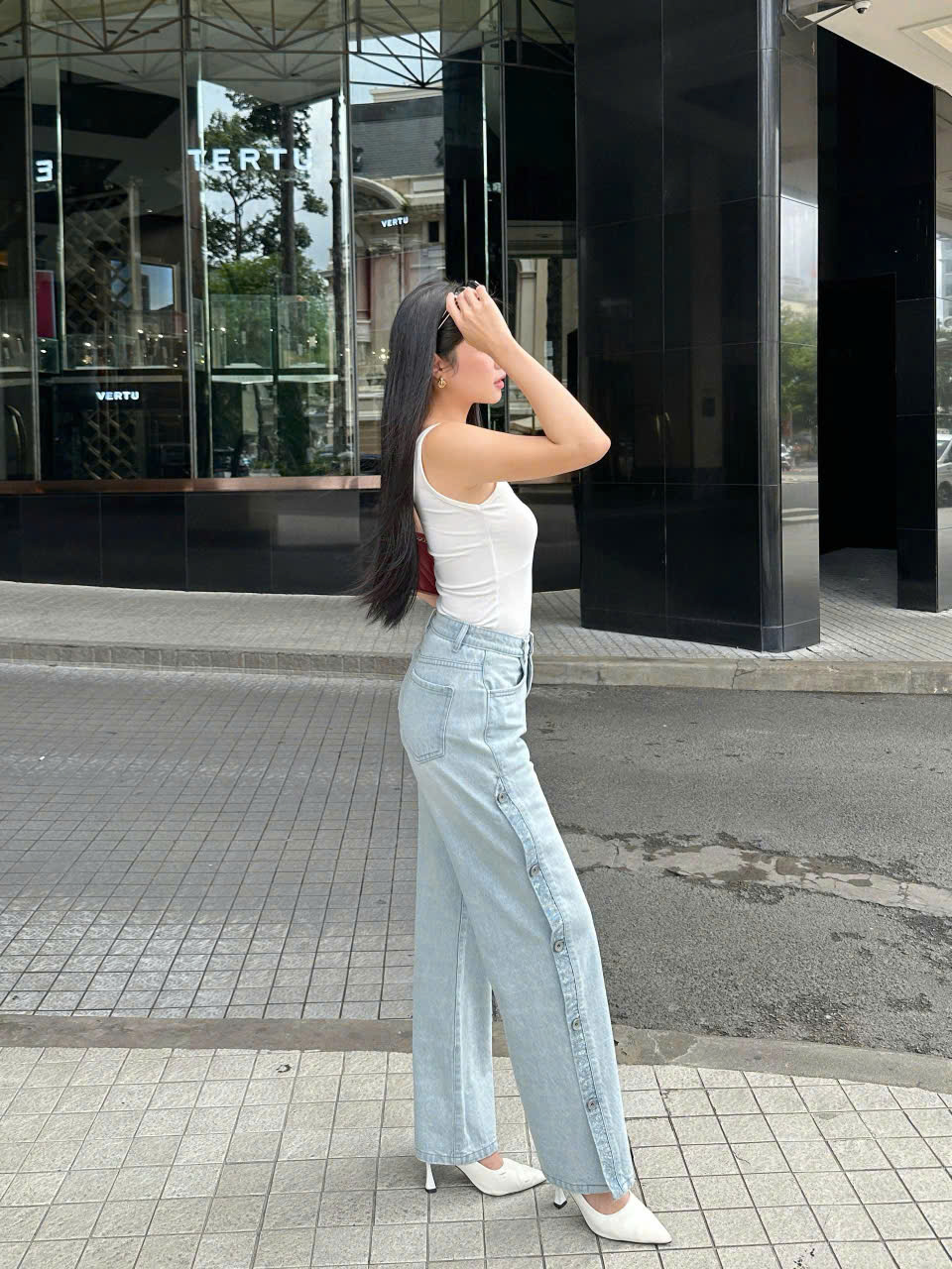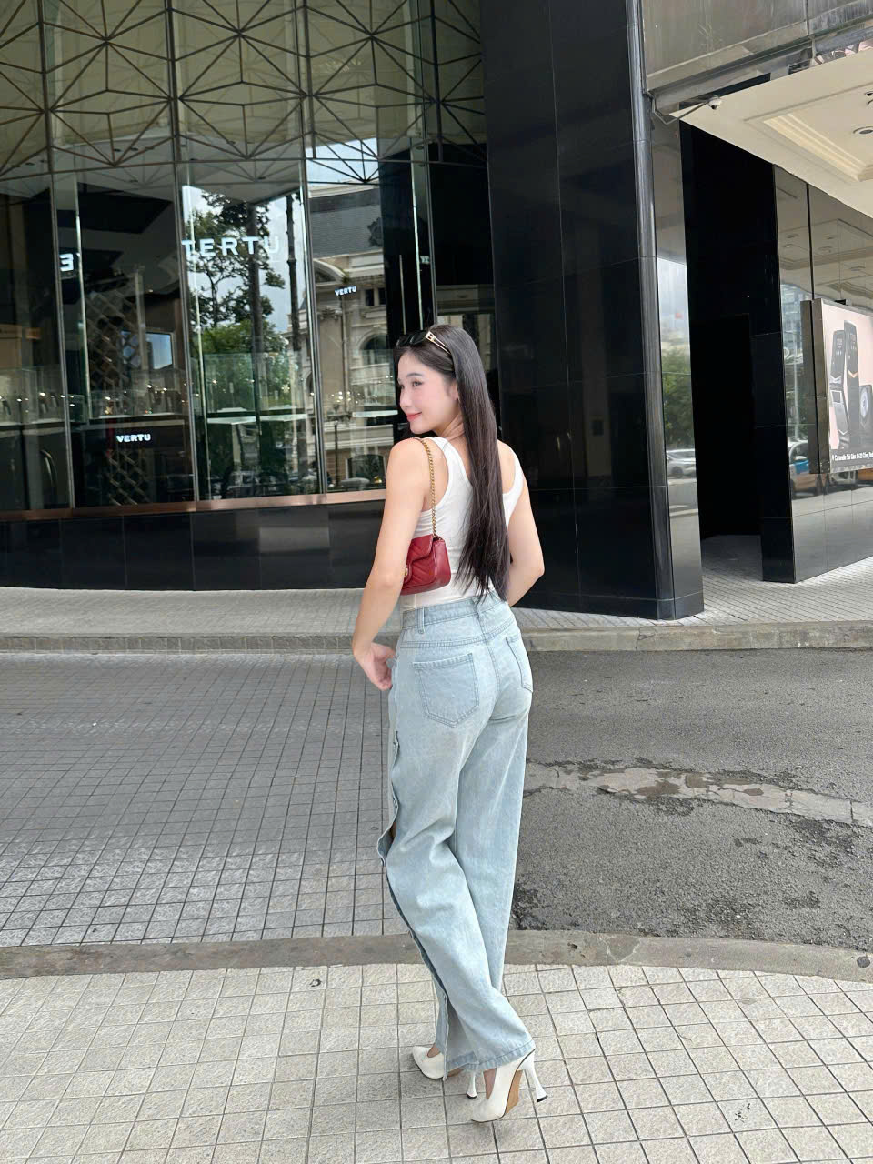 - Thiết kế quần Jeans ống rộng ôm nhẹ phần mông, vừa tạo hiệu ứng nâng tự nhiên, vừa khéo léo che đi những điểm chưa hoàn hảo, mang đến vóc dáng cân đối, tự tin.
