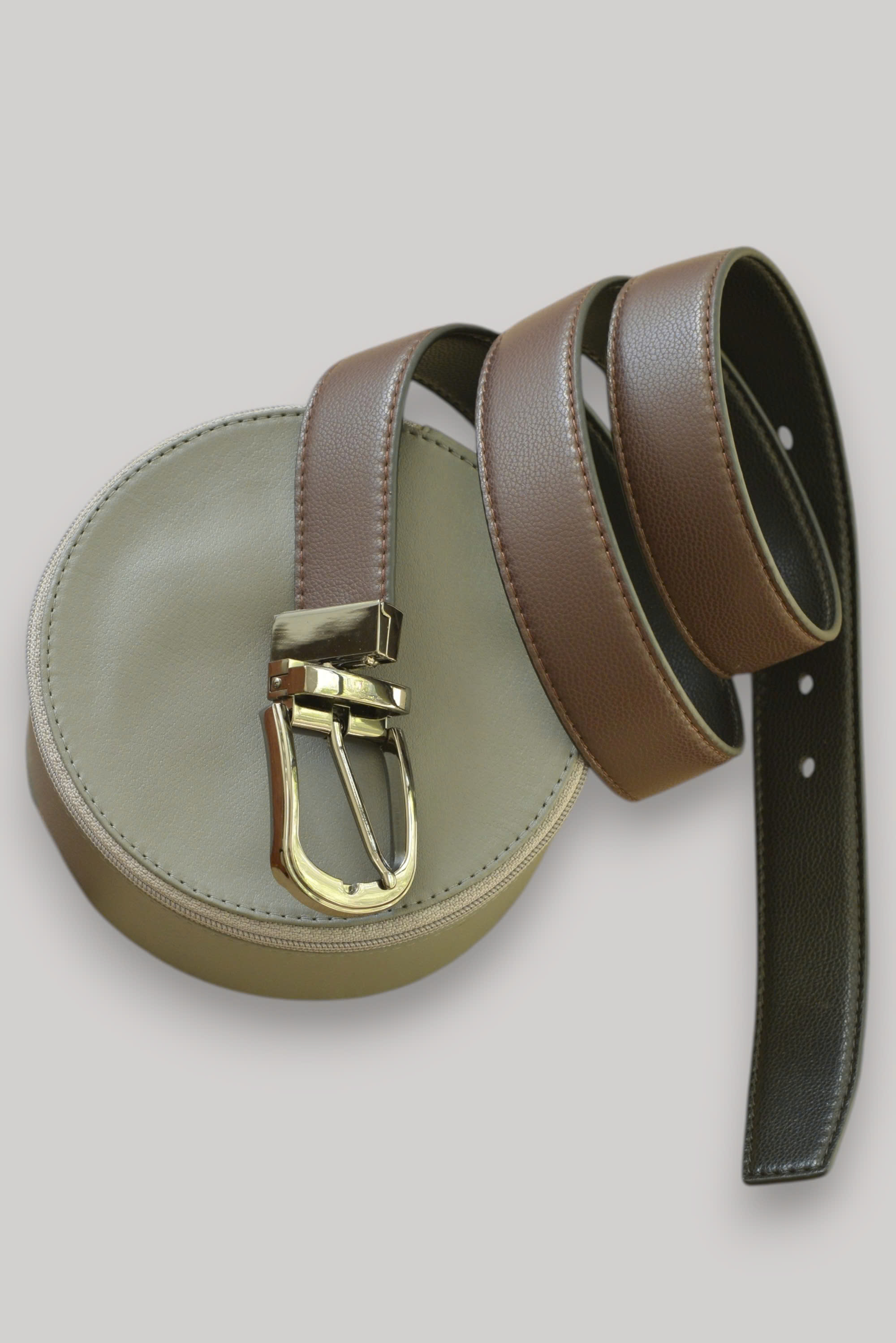 Dây nịt da Microfiber vân da tự nhiên, phong cách lịch lãm, đầu khóa xoay 360 độ sử dụng được 2 mặt dây thuận tiện cho các quý ông phối đồ.